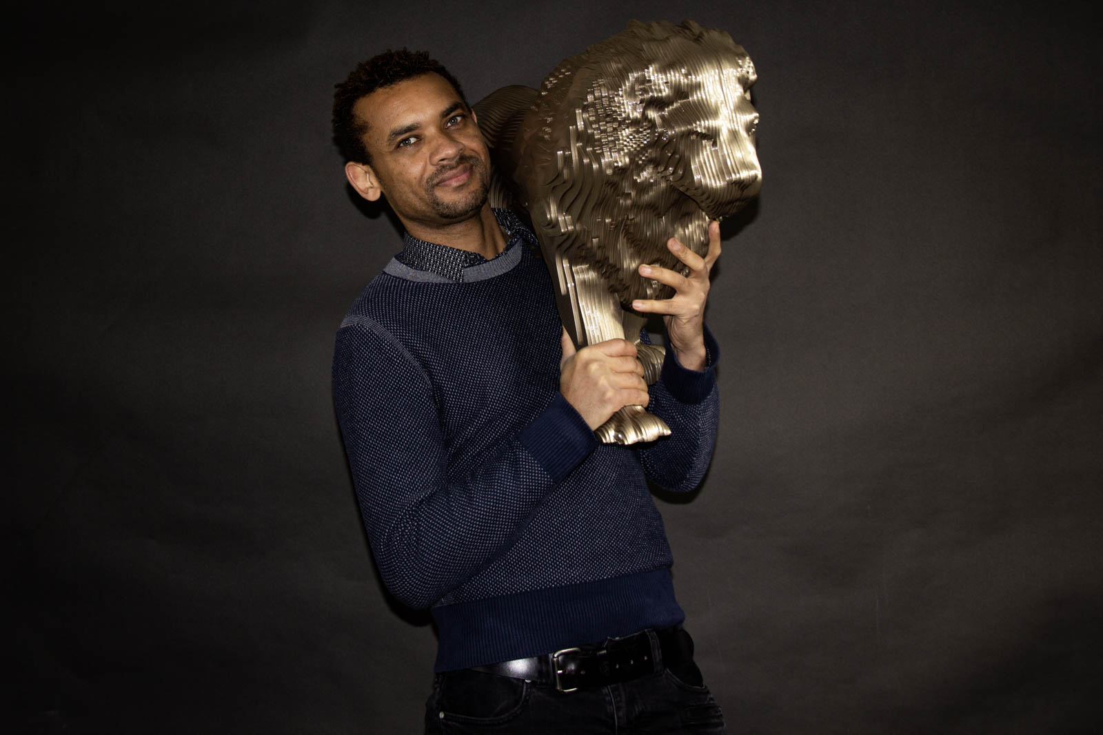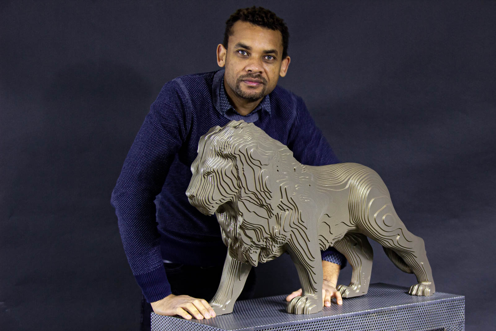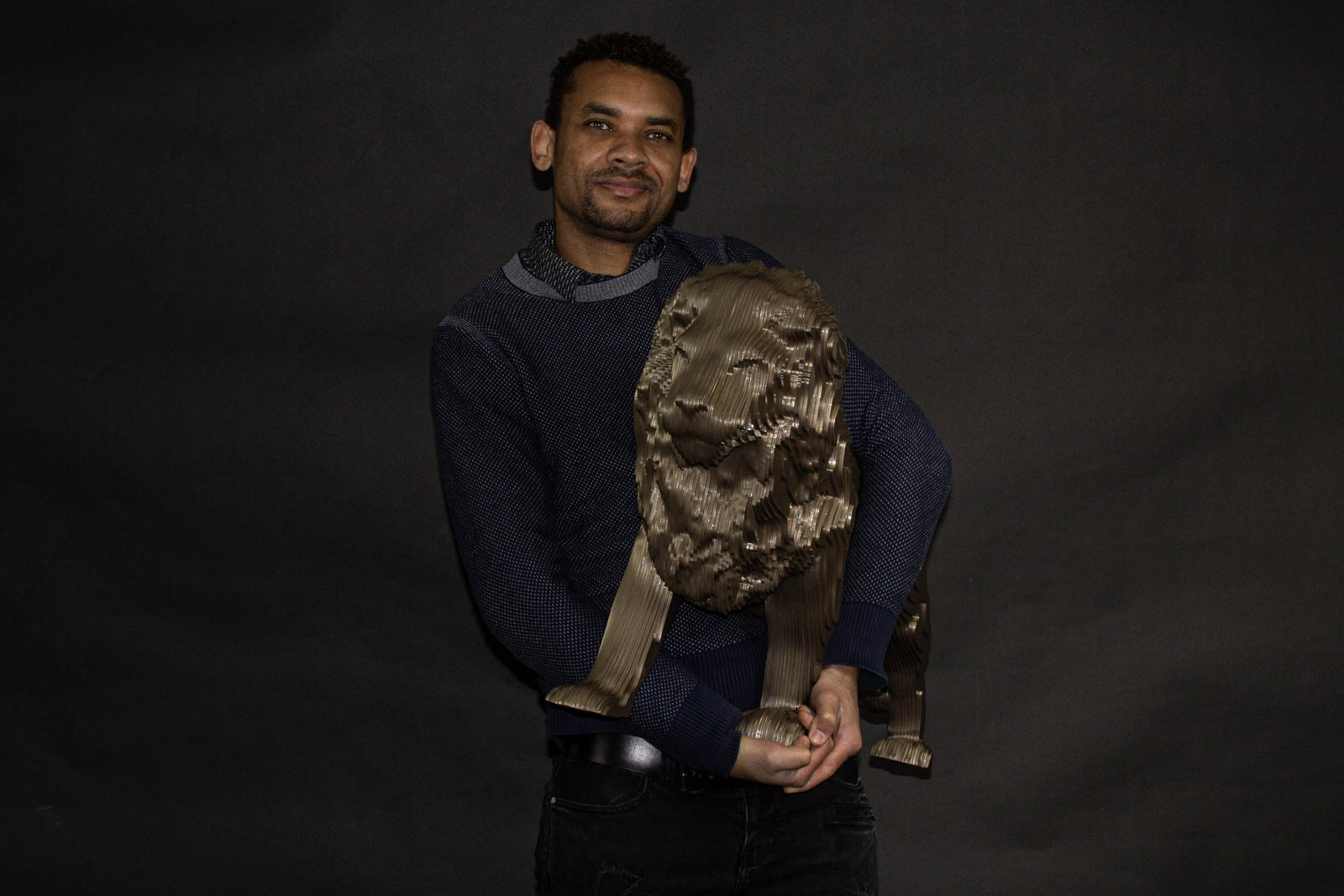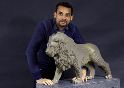 KANYA EIGENSCHAPPEN Naam: KANYA Techniek: Aluminium Kleur: Gold Gewicht: 16KG Formaat: 50x80x35cm Beperkte oplage: 1/8
